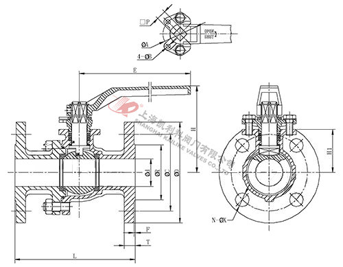 | Size | PN | d | L | R | C | D | H | H1 | E | F | T | □P | ø A | ØB | N | ØX | ISO 5211 |