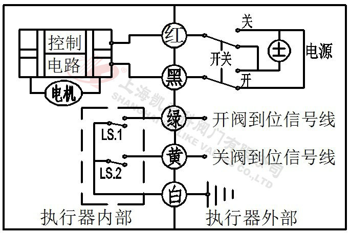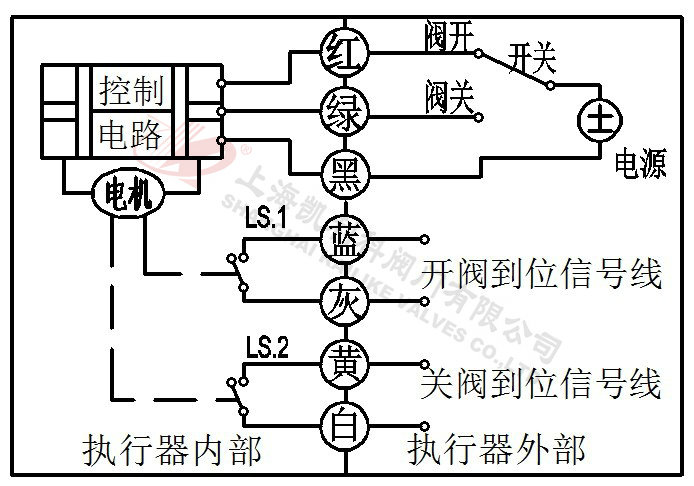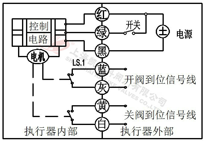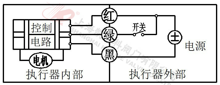 2、當(dāng)綠線開關(guān)閉合,閥門打開,到位后執(zhí)行器內(nèi)部自動(dòng)斷電。