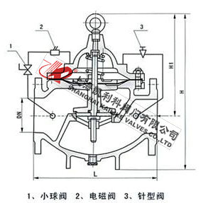 當(dāng)電磁導(dǎo)閥關(guān)閉時(shí),主閥控制室水不能流出,控制室生壓,推動(dòng)膜片關(guān)閉主閥。