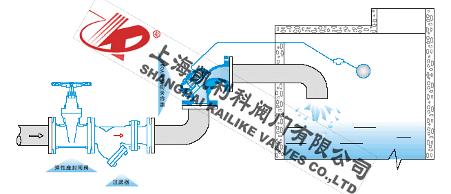 100A隔膜式定水位閥是一種隔膜式調(diào)節(jié)水箱和水塔液面高度的閥門。閥門由一特殊強(qiáng)化尼龍膜片將其分為上下兩個(gè)腔室,當(dāng)液面達(dá)到設(shè)定位置時(shí),浮球?qū)чy關(guān)閉,上腔壓力大于下腔,閥門關(guān)閉,即停止供水.當(dāng)液面下降超過(guò)預(yù)設(shè)位置,浮球?qū)чy開(kāi)啟,上腔壓力小于下腔壓力,閥門開(kāi)啟.閥門向池內(nèi)供水。