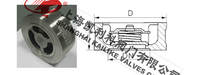 H71H、H71W對夾式止回閥該閥由閥體、閥瓣、彈簧等組成,水平或垂直安裝于管路系統(tǒng),防止介質倒流,具有結構短、體積小、質量輕;閥瓣關閉快速,水錘壓力小;流道通暢,流體阻力??;動作靈敏,密封性能好。