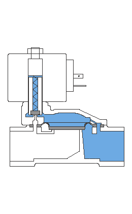 當(dāng)電磁閥電磁線(xiàn)圈通電時(shí),線(xiàn)圈激磁回路形成磁場(chǎng)并產(chǎn)生磁力,活動(dòng)鐵芯受電磁力的吸引克服了自重與彈簧的阻力而上升。當(dāng)工作壓力小于0.05Mpa時(shí),活動(dòng)鐵芯上移打開(kāi)導(dǎo)閥直接拉動(dòng)主閥口膜片,形成通路;當(dāng)工作壓力大于0.05Mpa時(shí),通過(guò)首先打開(kāi)導(dǎo)閥,使膜片上下腔產(chǎn)生壓力差,膜片在差動(dòng)力的作用下克服自重和閥芯彈簧而開(kāi)啟隨即主閥口全開(kāi),斷開(kāi)電源時(shí),導(dǎo)閥口在彈簧力的作用下關(guān)閉,閥芯膜片受向下的壓力而關(guān)閉主閥口,閥口斷流,電磁閥處于關(guān)閉狀態(tài)(常開(kāi)閥與此相反)。
